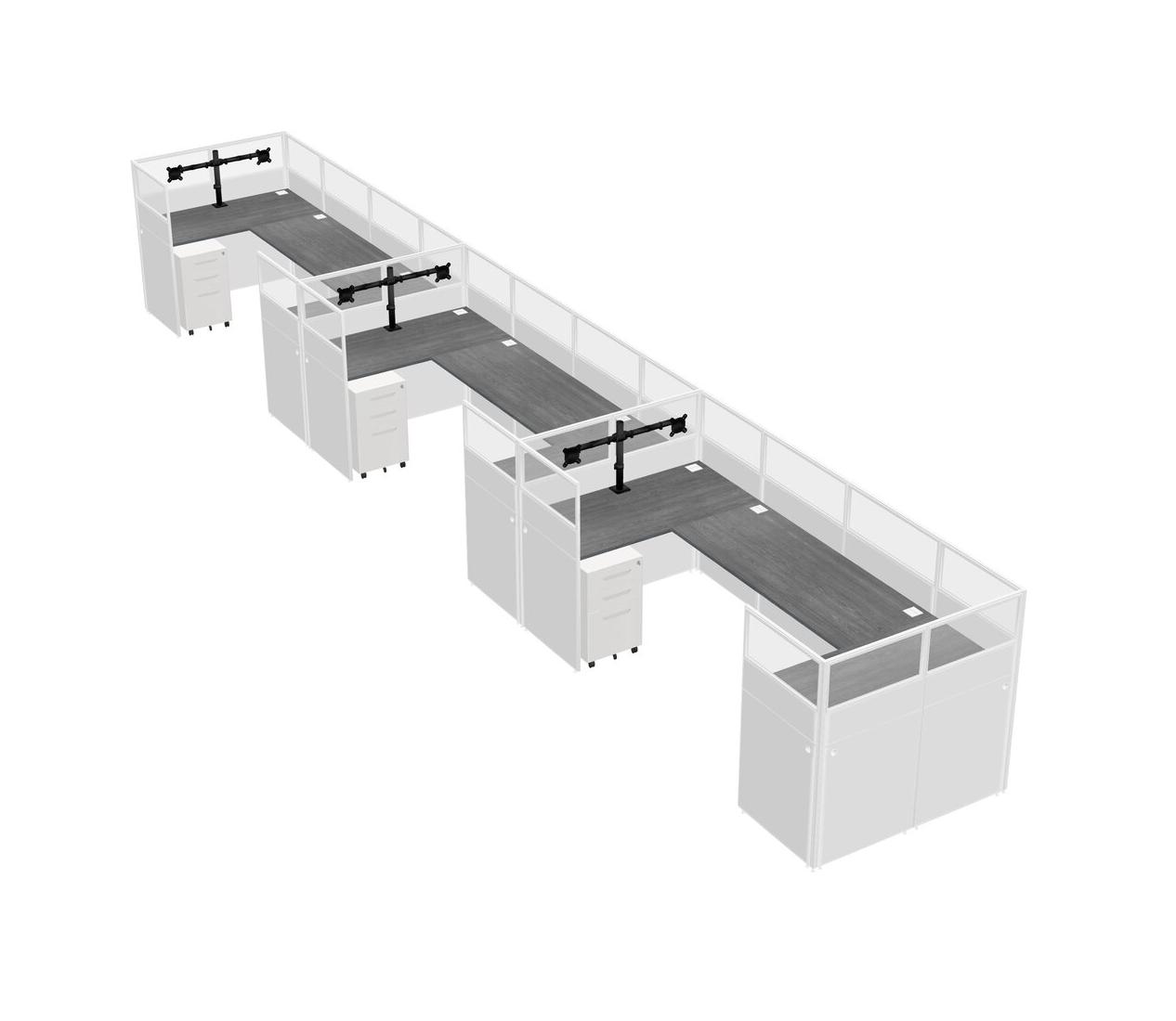 Grey U-shaped Panel System For 3 Person + Monitor Arm (double Arms) + Metal Mobile Drawers For 3 User(s)