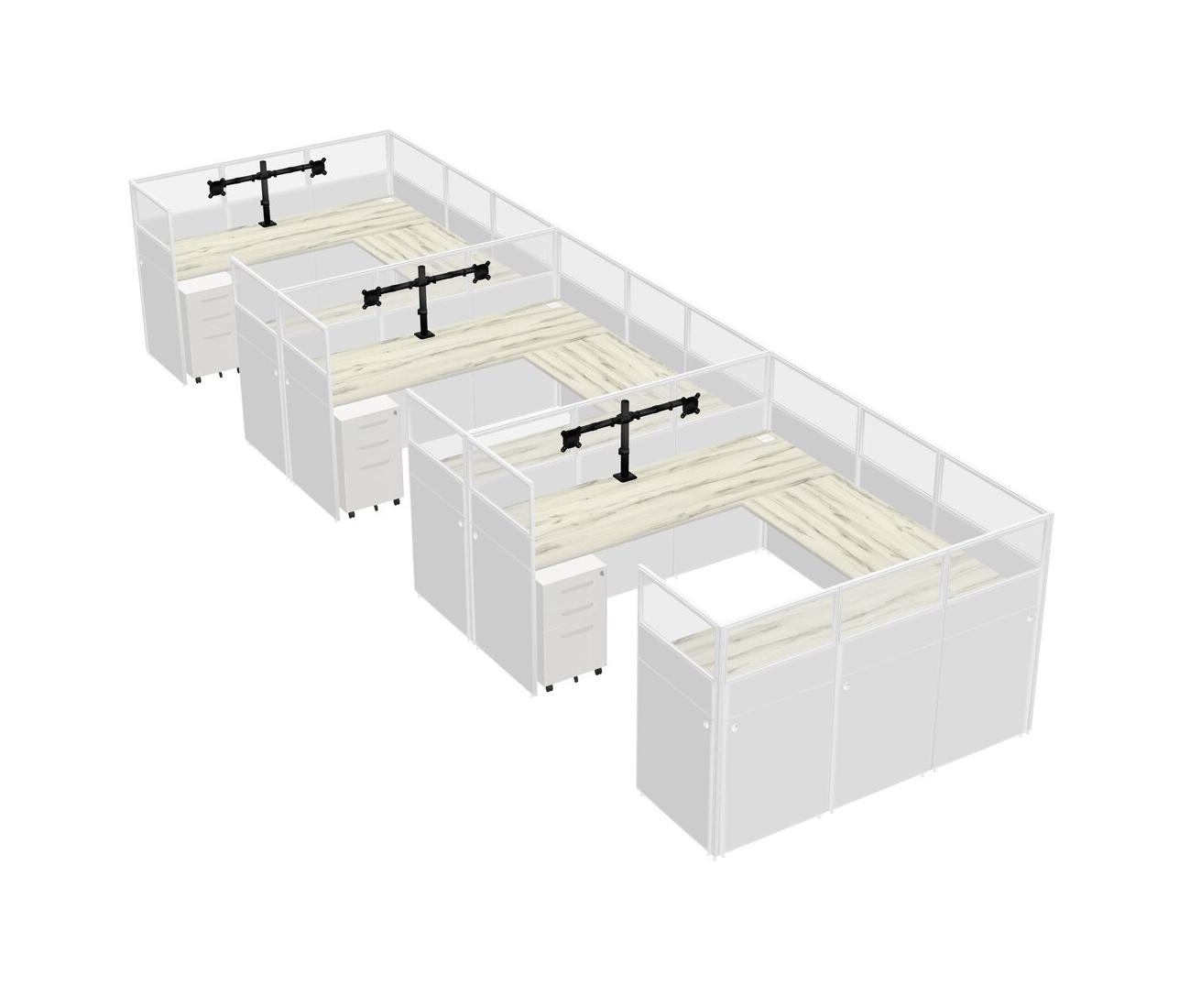Heinne Holz U-shaped Panel System For 3 Person + Monitor Arm (double Arms) + Metal Mobile Drawers For 3 User(s)