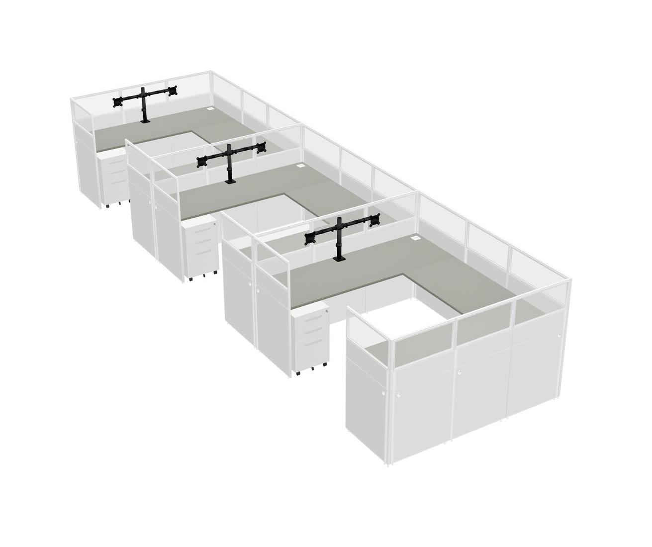 Grey Shadows U-shaped Panel System For 3 Person + Monitor Arm (double Arms) + Metal Mobile Drawers For 3 User(s)