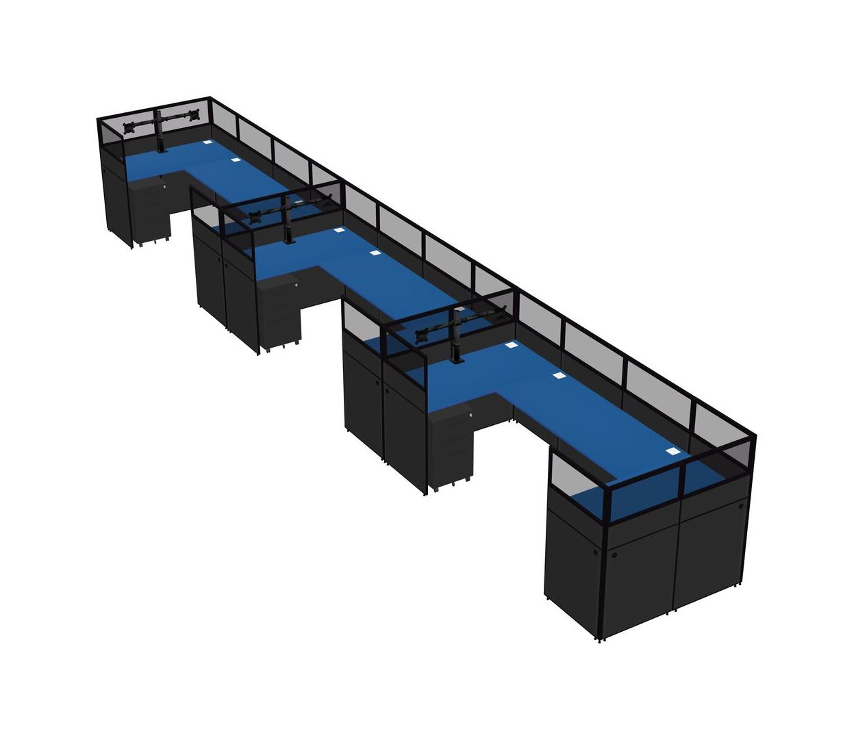 Prism Blue U-shaped Panel System For 3 Person + Monitor Arm (double Arms) + Metal Mobile Drawers For 3 User(s)