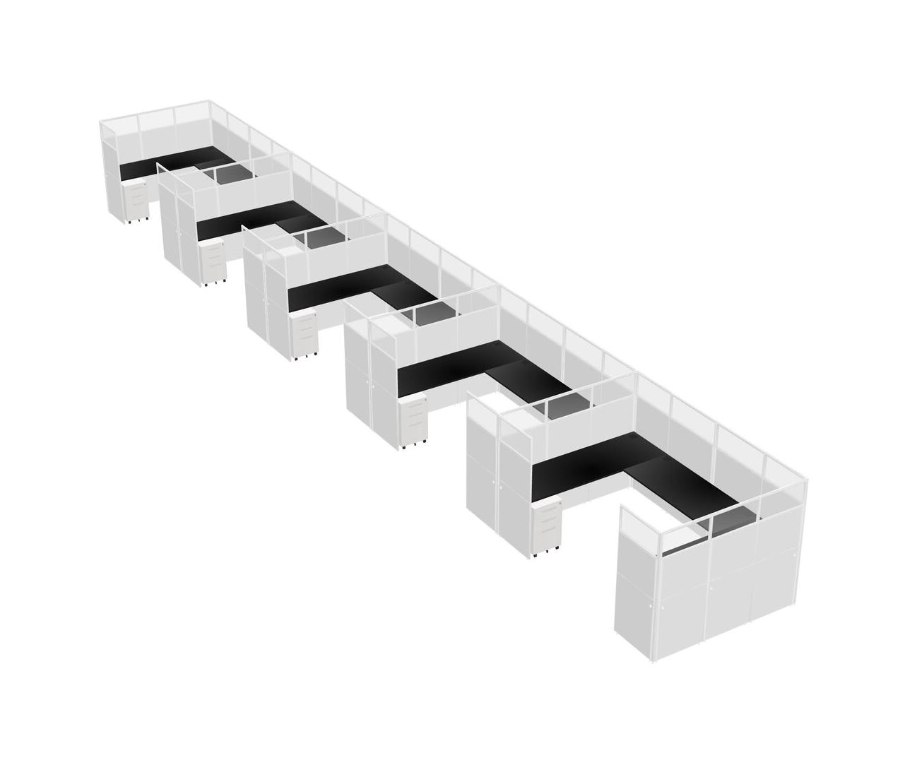 Black U-shaped Panel System For 5 Person + Metal Mobile Drawers For 5 User(s)
