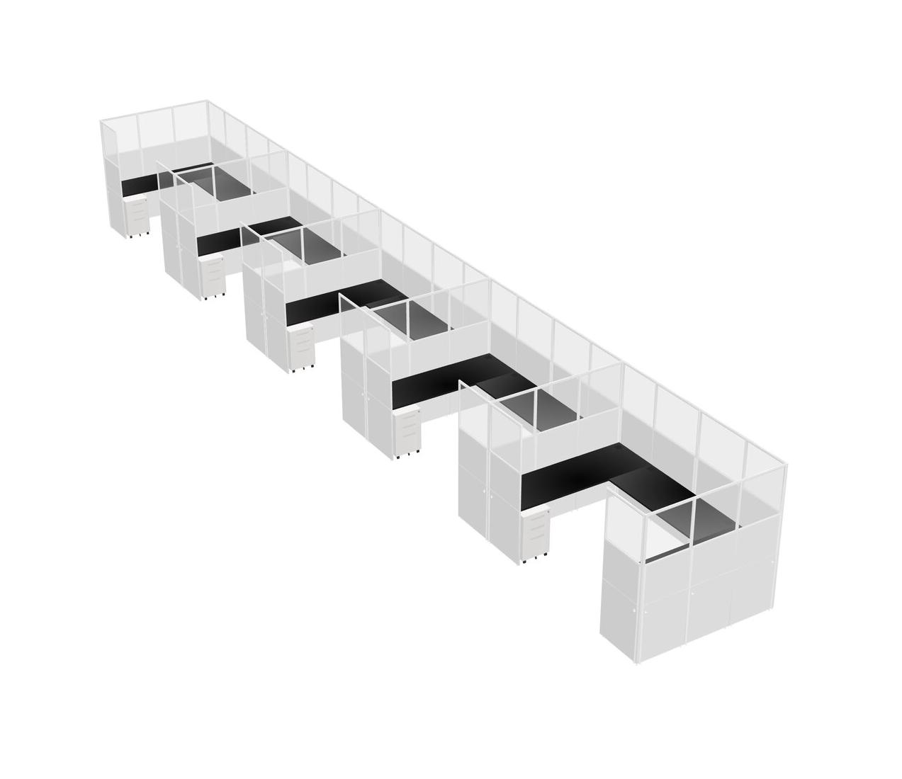 Black U-shaped Panel System For 5 Person + Metal Mobile Drawers For 5 User(s)