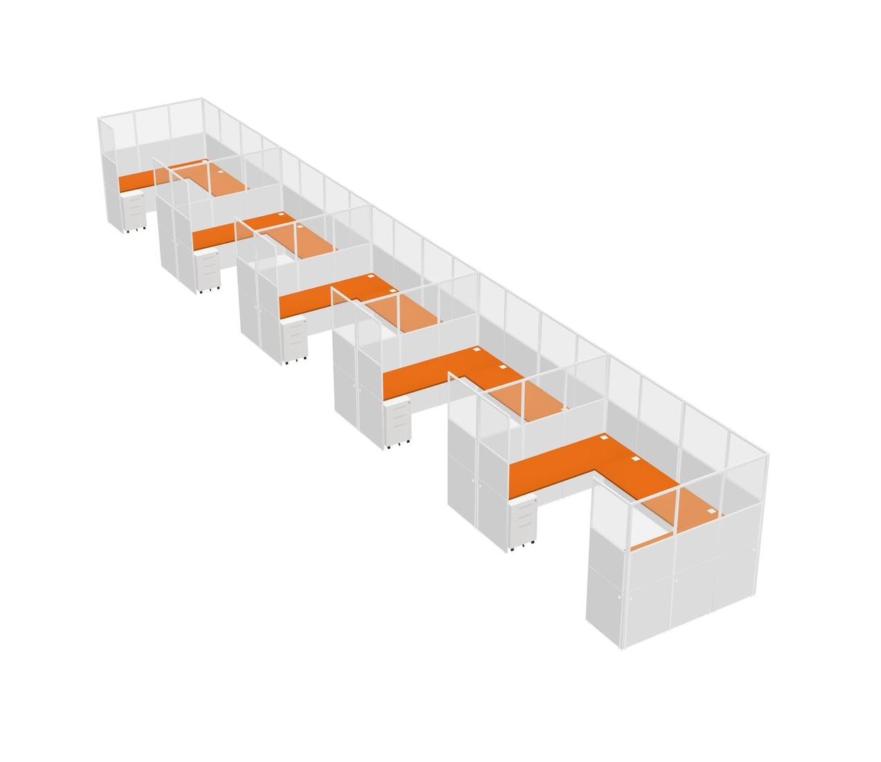 Orange U-shaped Panel System For 5 Person + Metal Mobile Drawers For 5 User(s)