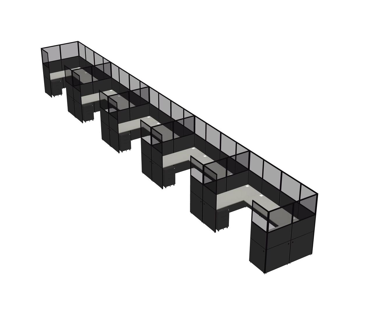 Grey Shadows U-shaped Panel System For 5 Person + Metal Mobile Drawers For 5 User(s)