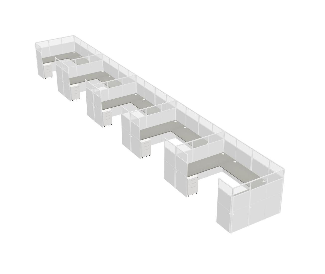 Grey Shadows U-shaped Panel System For 5 Person + Metal Mobile Drawers For 5 User(s)