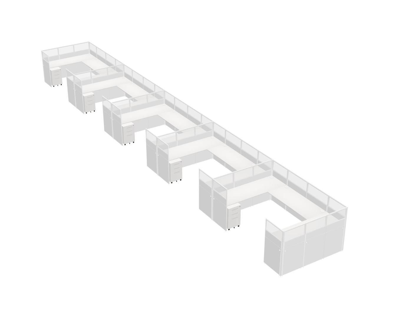 White U-shaped Panel System For 5 Person + Metal Mobile Drawers For 5 User(s)