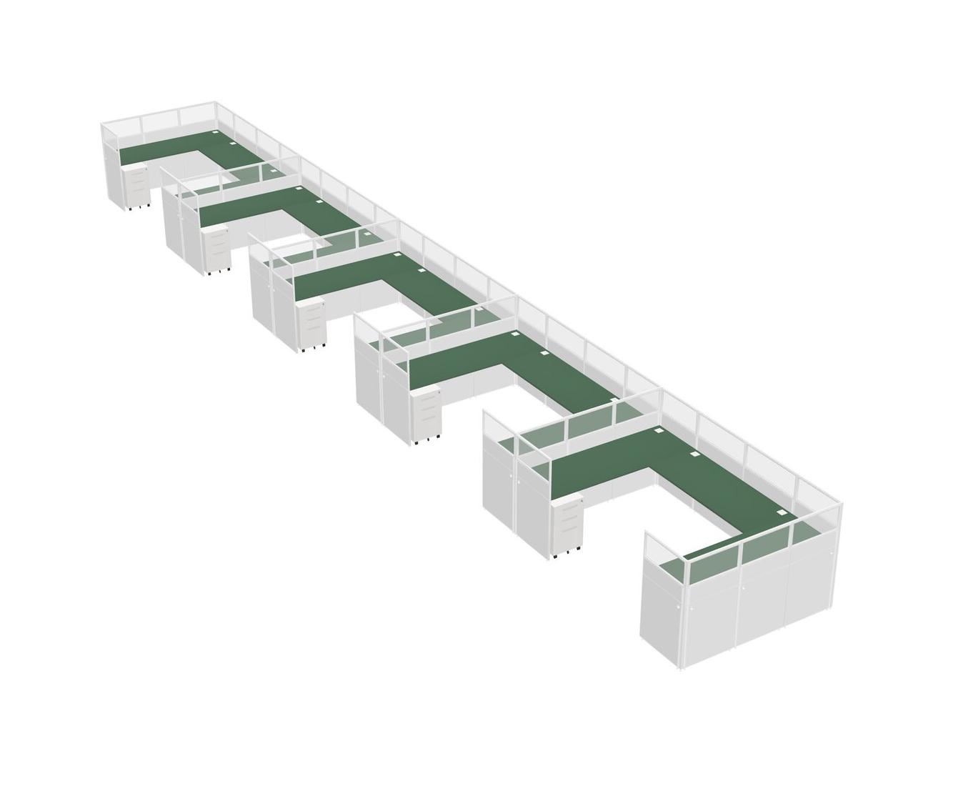 Green U-shaped Panel System For 5 Person + Metal Mobile Drawers For 5 User(s)