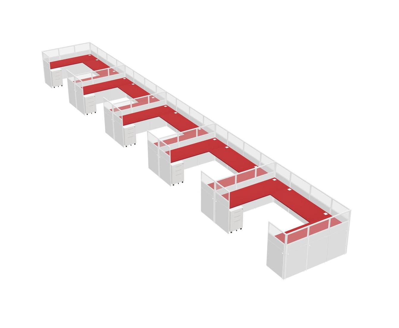 Prism Red U-shaped Panel System For 5 Person + Metal Mobile Drawers For 5 User(s)