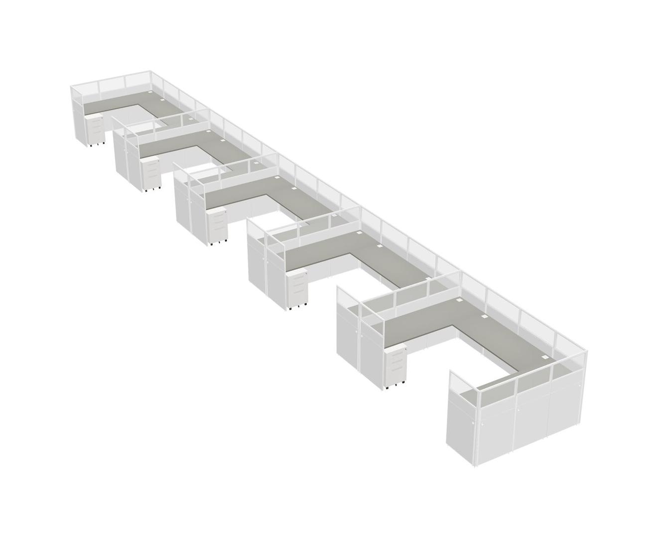 Grey Shadows U-shaped Panel System For 5 Person + Metal Mobile Drawers For 5 User(s)