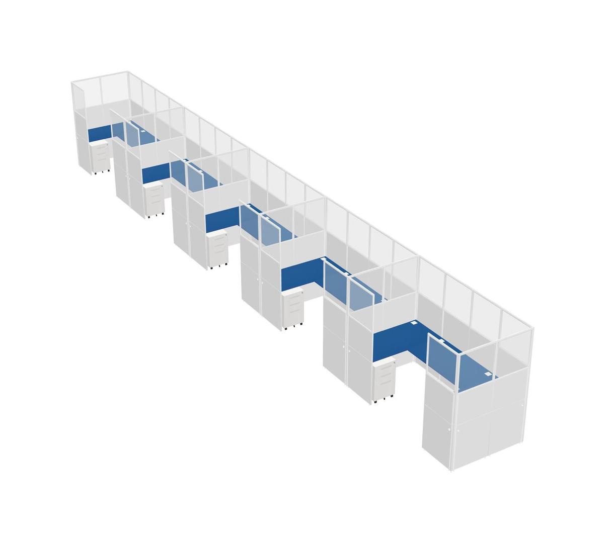 Prism Blue U-shaped Panel System For 5 Person + Metal Mobile Drawers For 5 User(s)