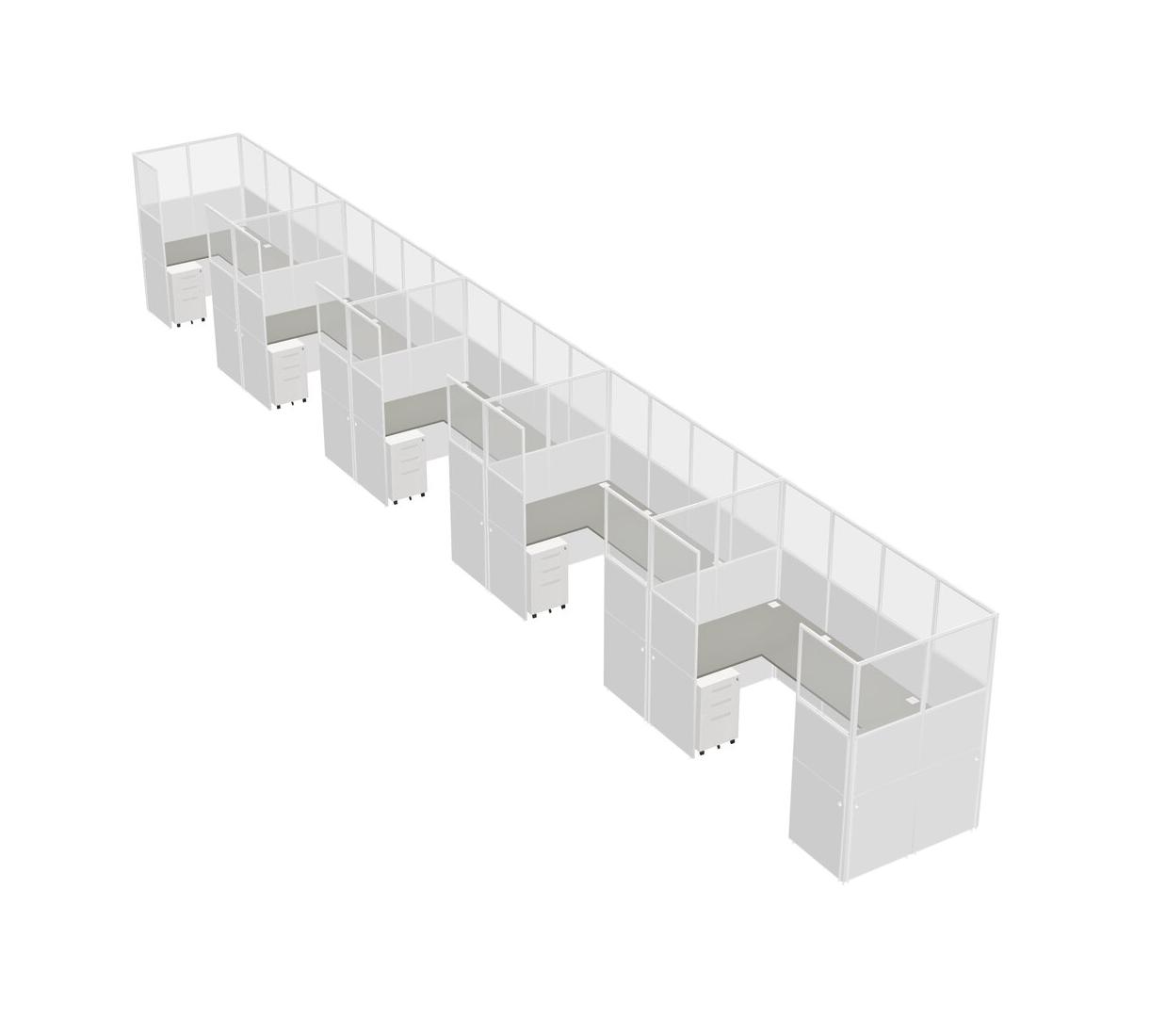 Grey Shadows U-shaped Panel System For 5 Person + Metal Mobile Drawers For 5 User(s)