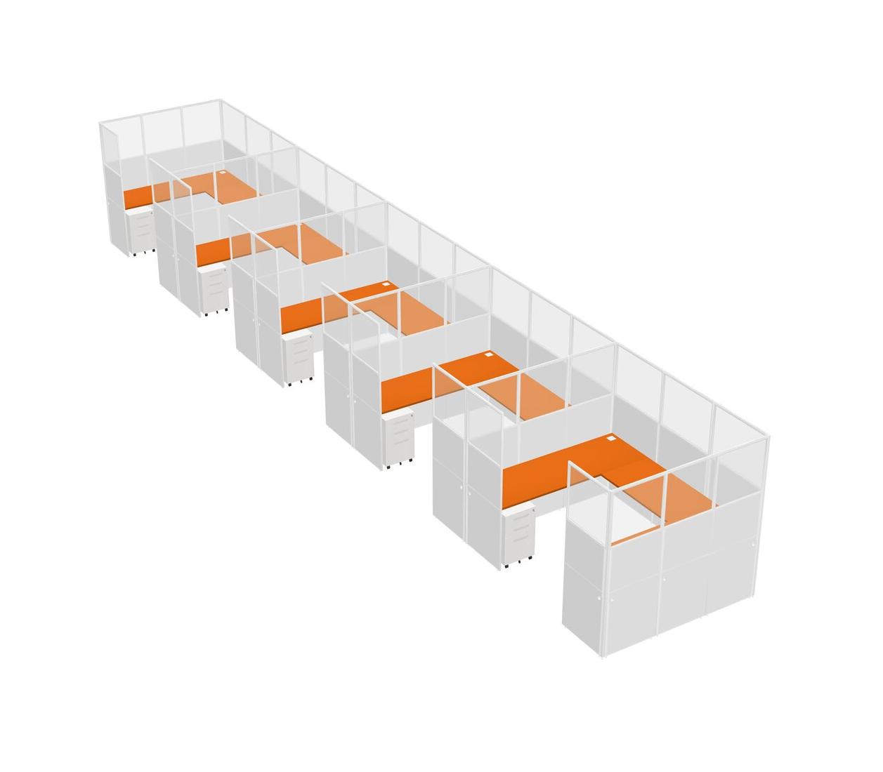 Orange U-shaped Panel System For 5 Person + Metal Mobile Drawers For 5 User(s)