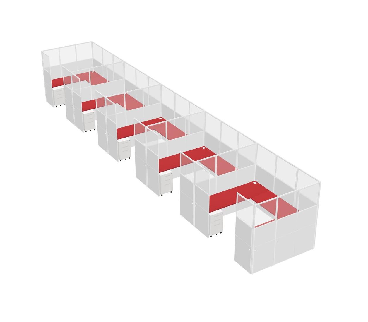 Prism Red U-shaped Panel System For 5 Person + Metal Mobile Drawers For 5 User(s)