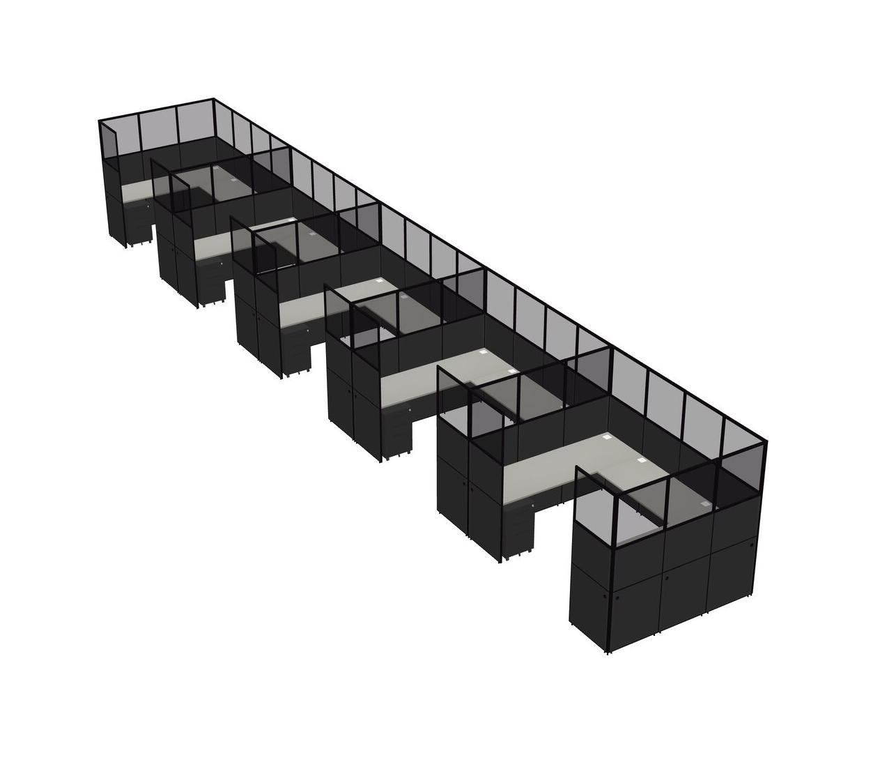 Grey Shadows U-shaped Panel System For 5 Person + Metal Mobile Drawers For 5 User(s)