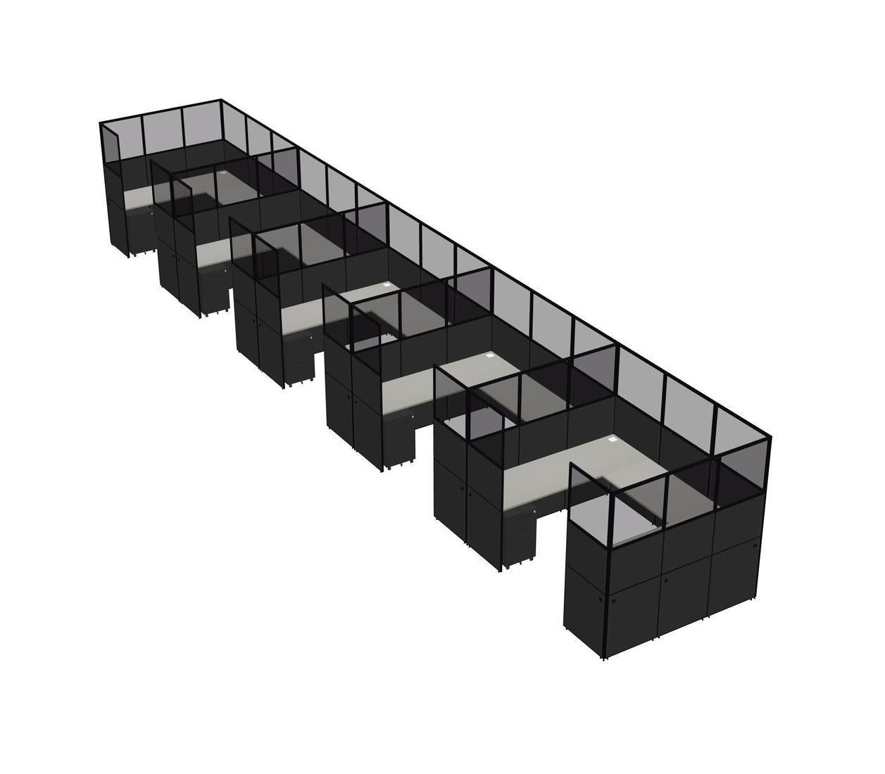 Grey Shadows U-shaped Panel System For 5 Person + Metal Mobile Drawers For 5 User(s)