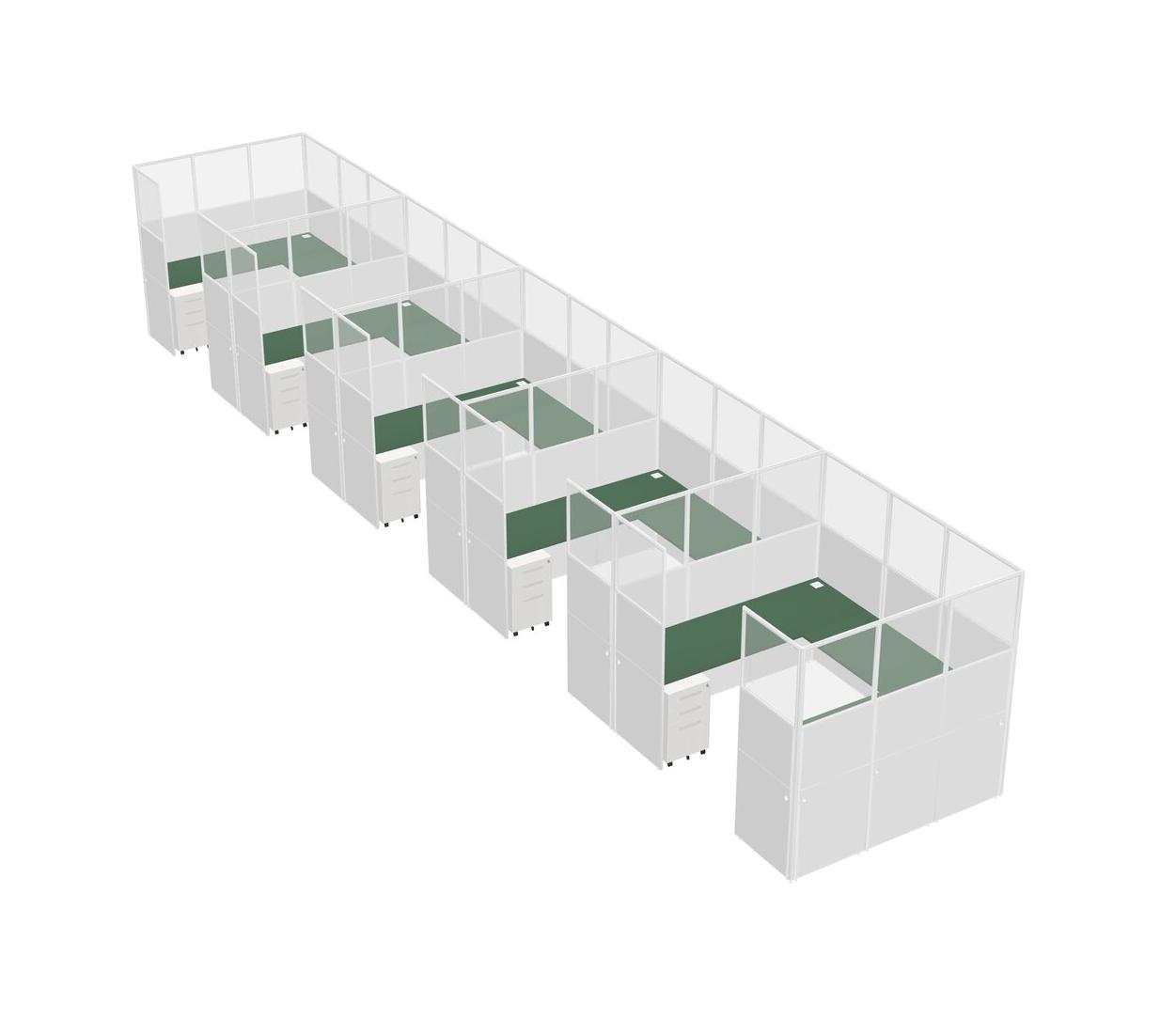Green U-shaped Panel System For 5 Person + Metal Mobile Drawers For 5 User(s)