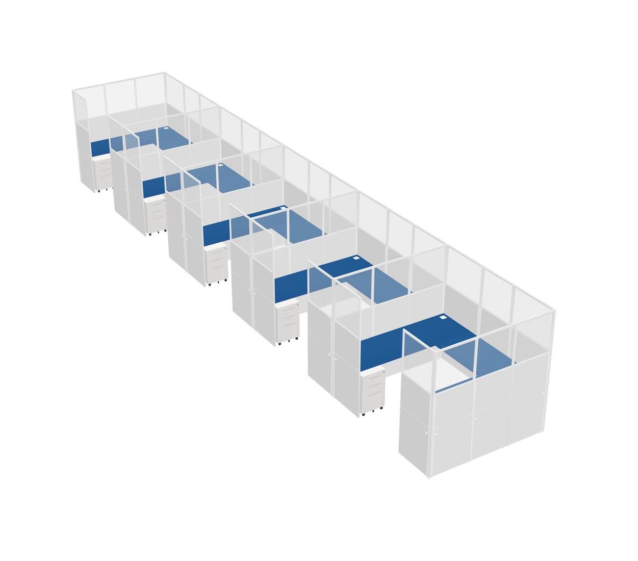 Prism Blue U-shaped Panel System For 5 Person + Metal Mobile Drawers For 5 User(s)