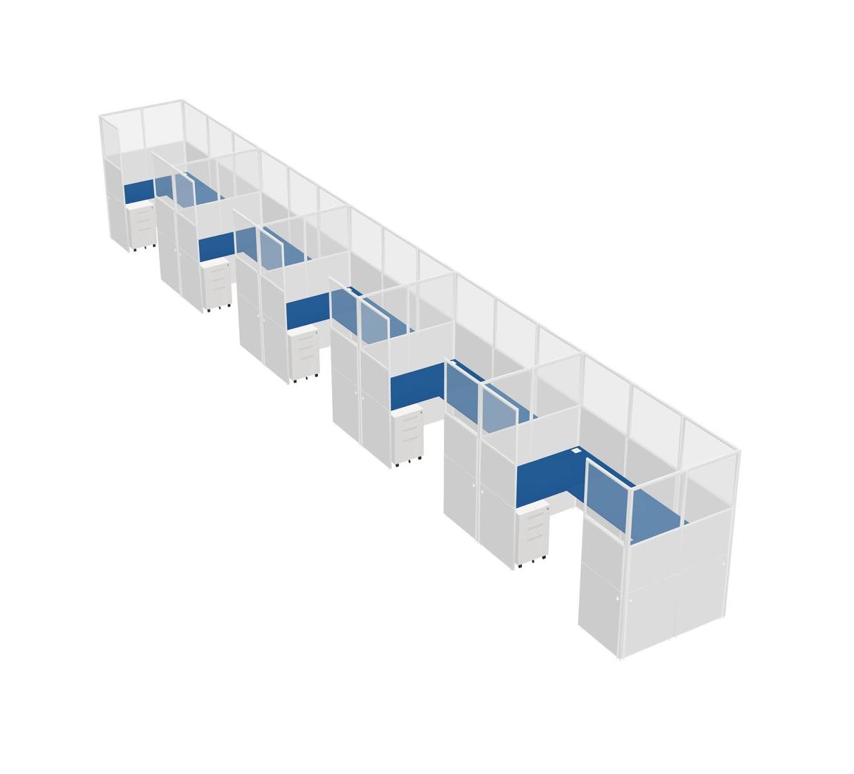 Prism Blue U-shaped Panel System For 5 Person + Metal Mobile Drawers For 5 User(s)