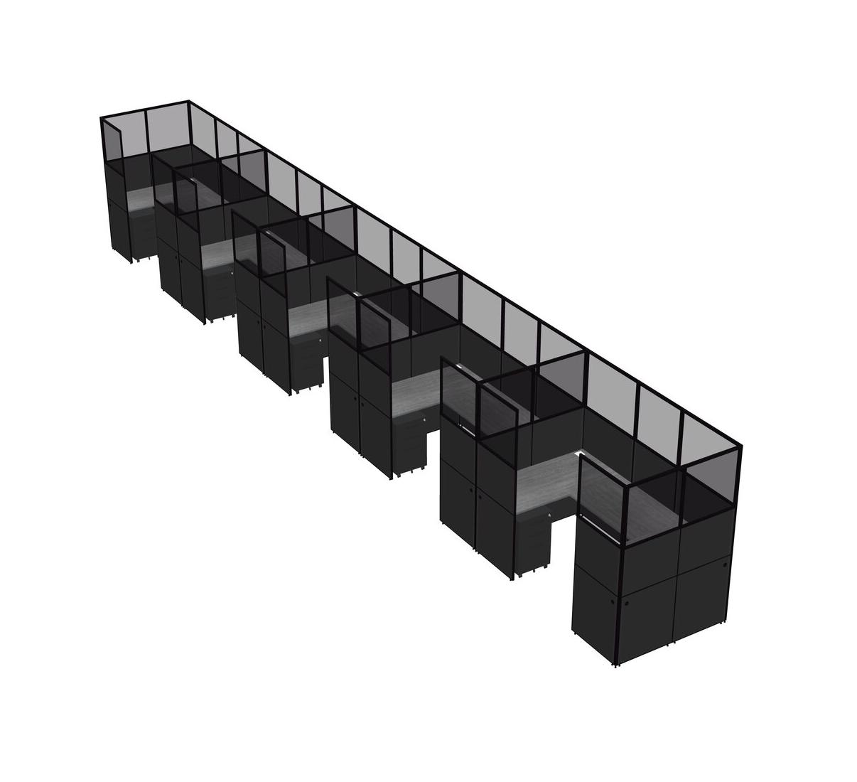 Grey U-shaped Panel System For 5 Person + Metal Mobile Drawers For 5 User(s)