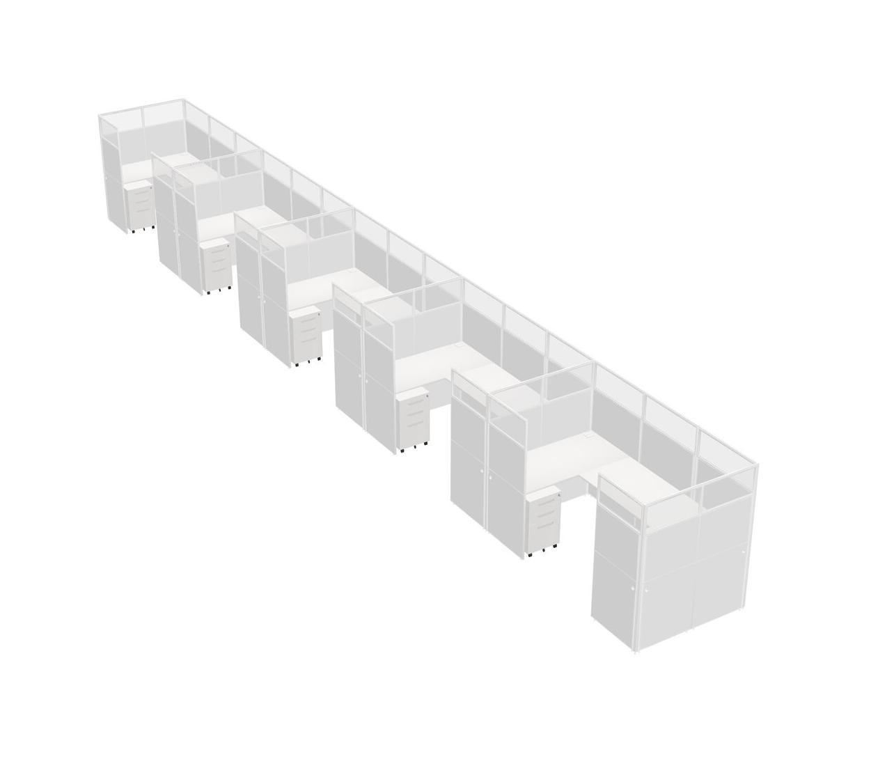 White U-shaped Panel System For 5 Person + Metal Mobile Drawers For 5 User(s)