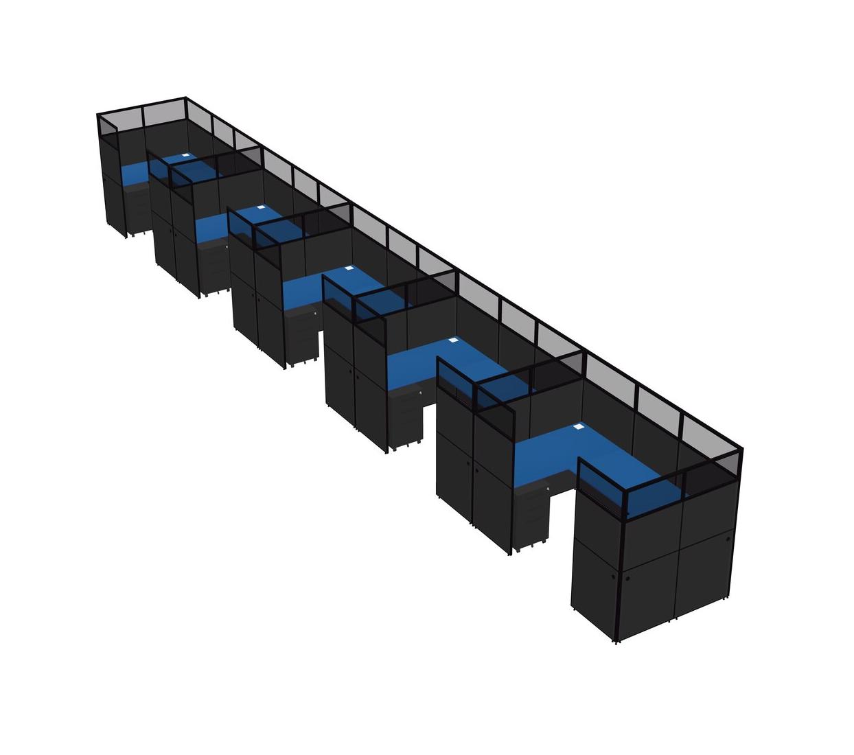 Prism Blue U-shaped Panel System For 5 Person + Metal Mobile Drawers For 5 User(s)