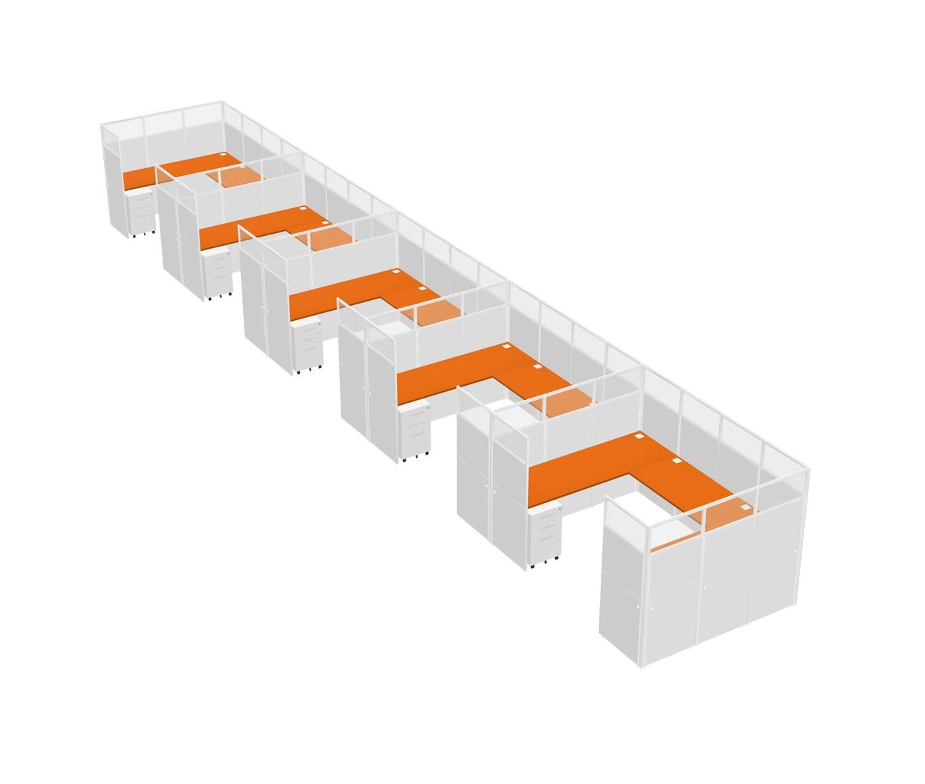 Orange U-shaped Panel System For 5 Person + Metal Mobile Drawers For 5 User(s)