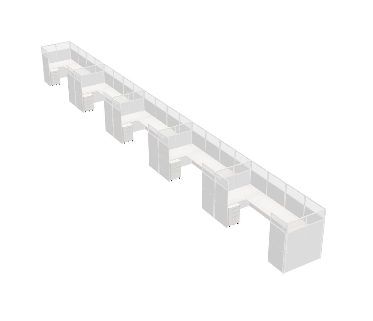 White U-shaped Panel System For 5 Person + Metal Mobile Drawers For 5 User(s)