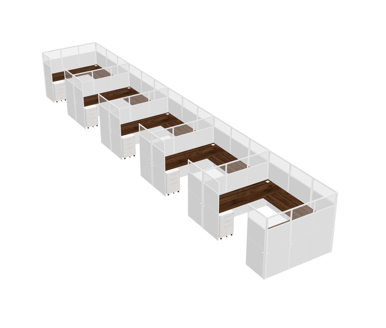 Columbia Walnut U-shaped Panel System For 5 Person + Metal Mobile Drawers For 5 User(s)