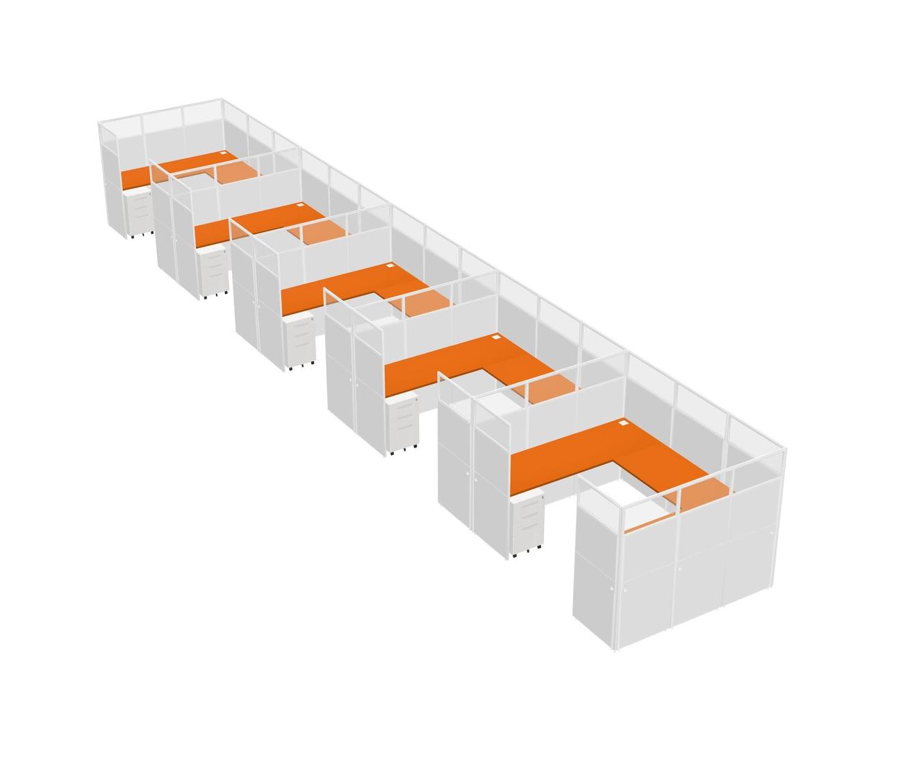 Orange U-shaped Panel System For 5 Person + Metal Mobile Drawers For 5 User(s)