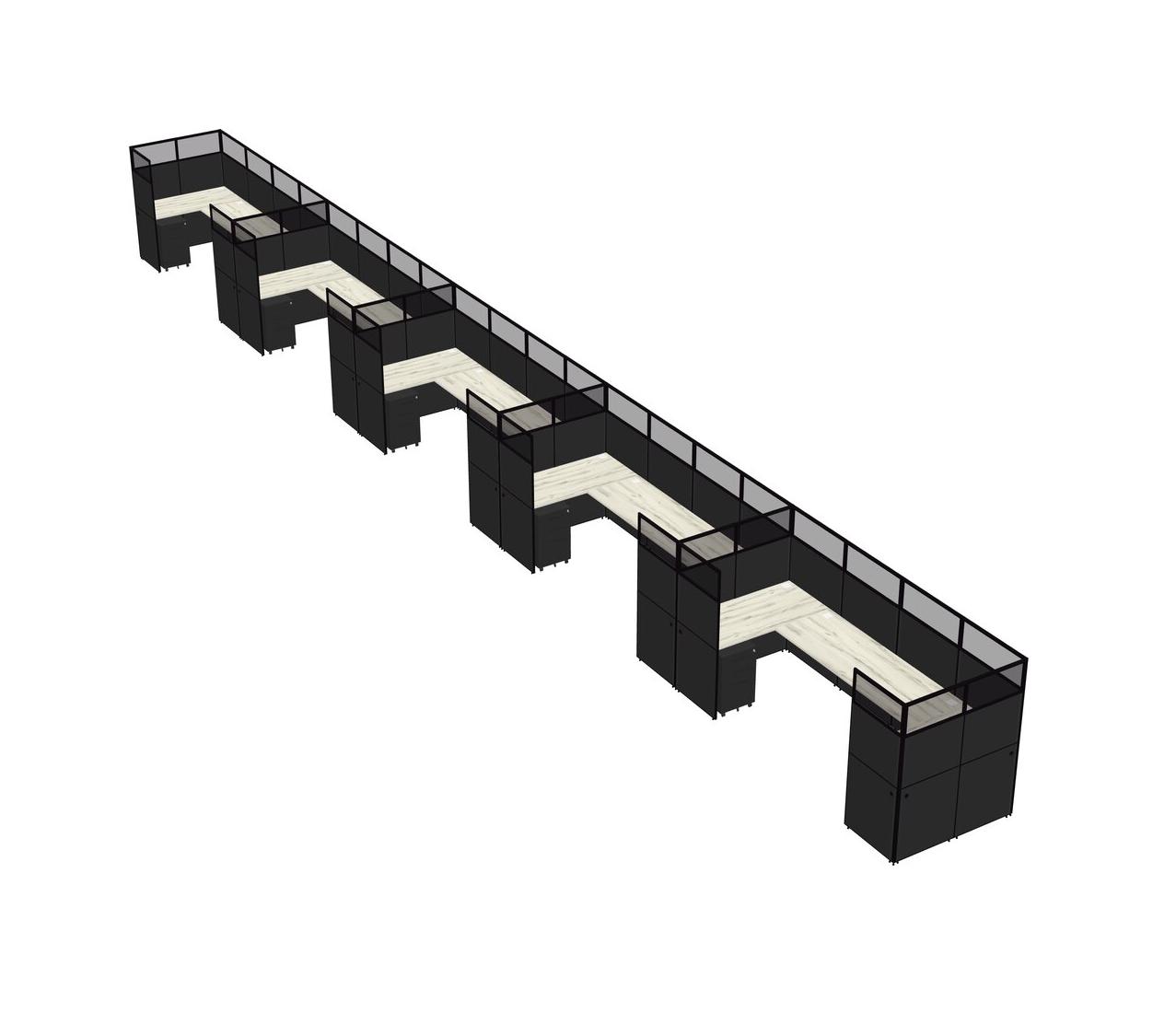 Heinne Holz U-shaped Panel System For 5 Person + Metal Mobile Drawers For 5 User(s)