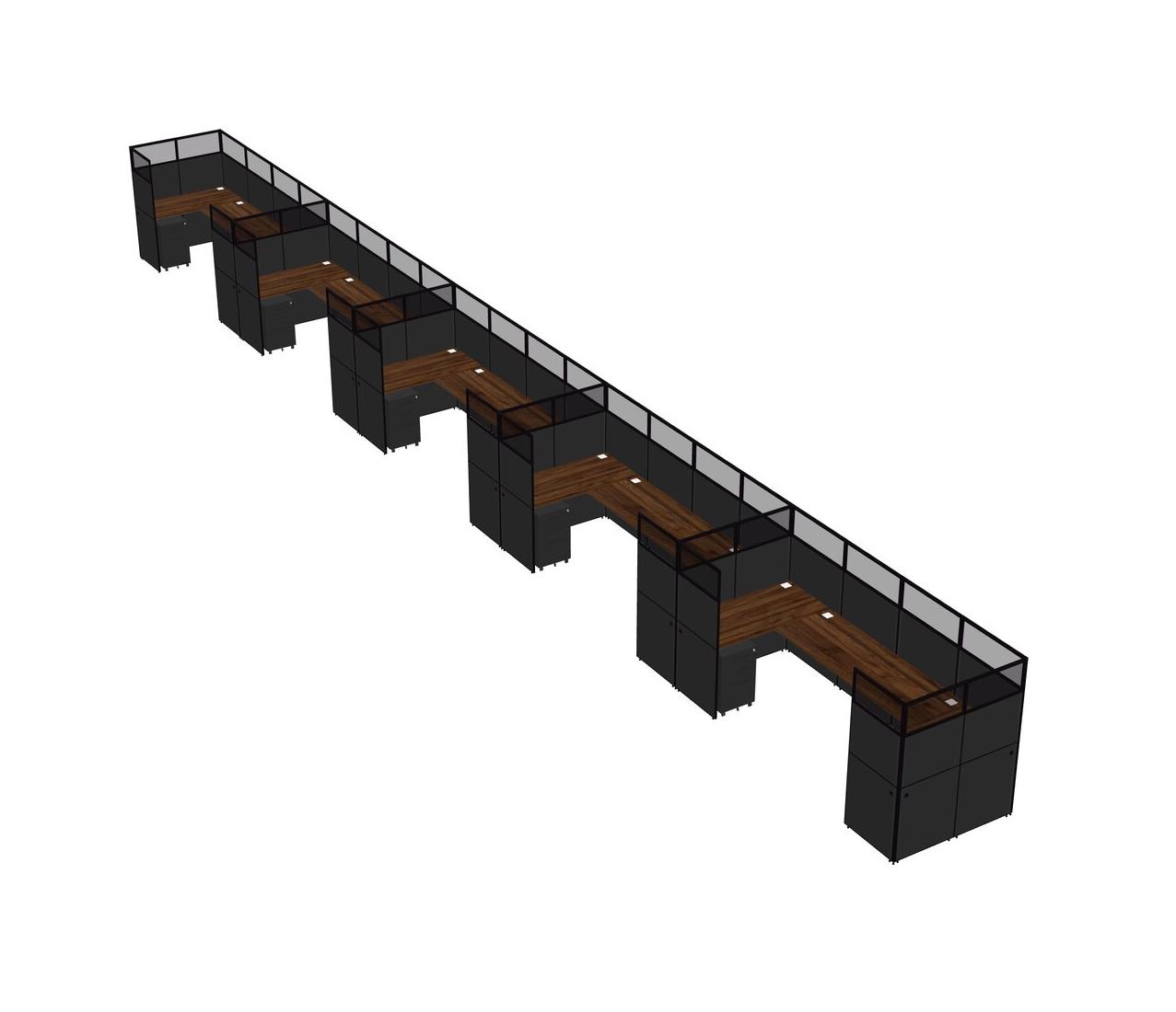 Columbia Walnut U-shaped Panel System For 5 Person + Metal Mobile Drawers For 5 User(s)
