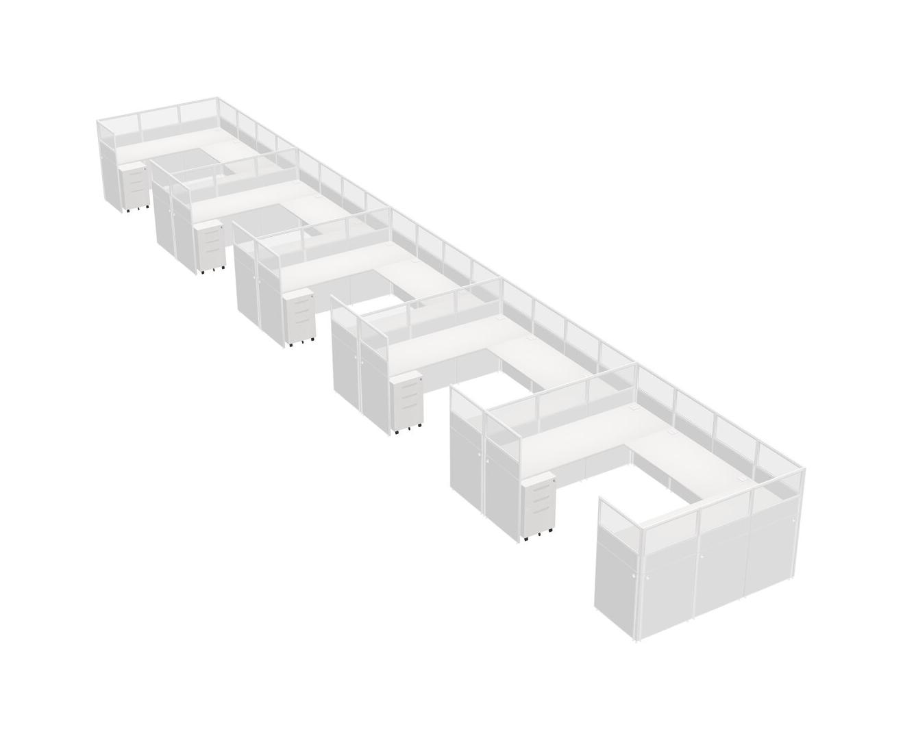 White U-shaped Panel System For 5 Person + Metal Mobile Drawers For 5 User(s)
