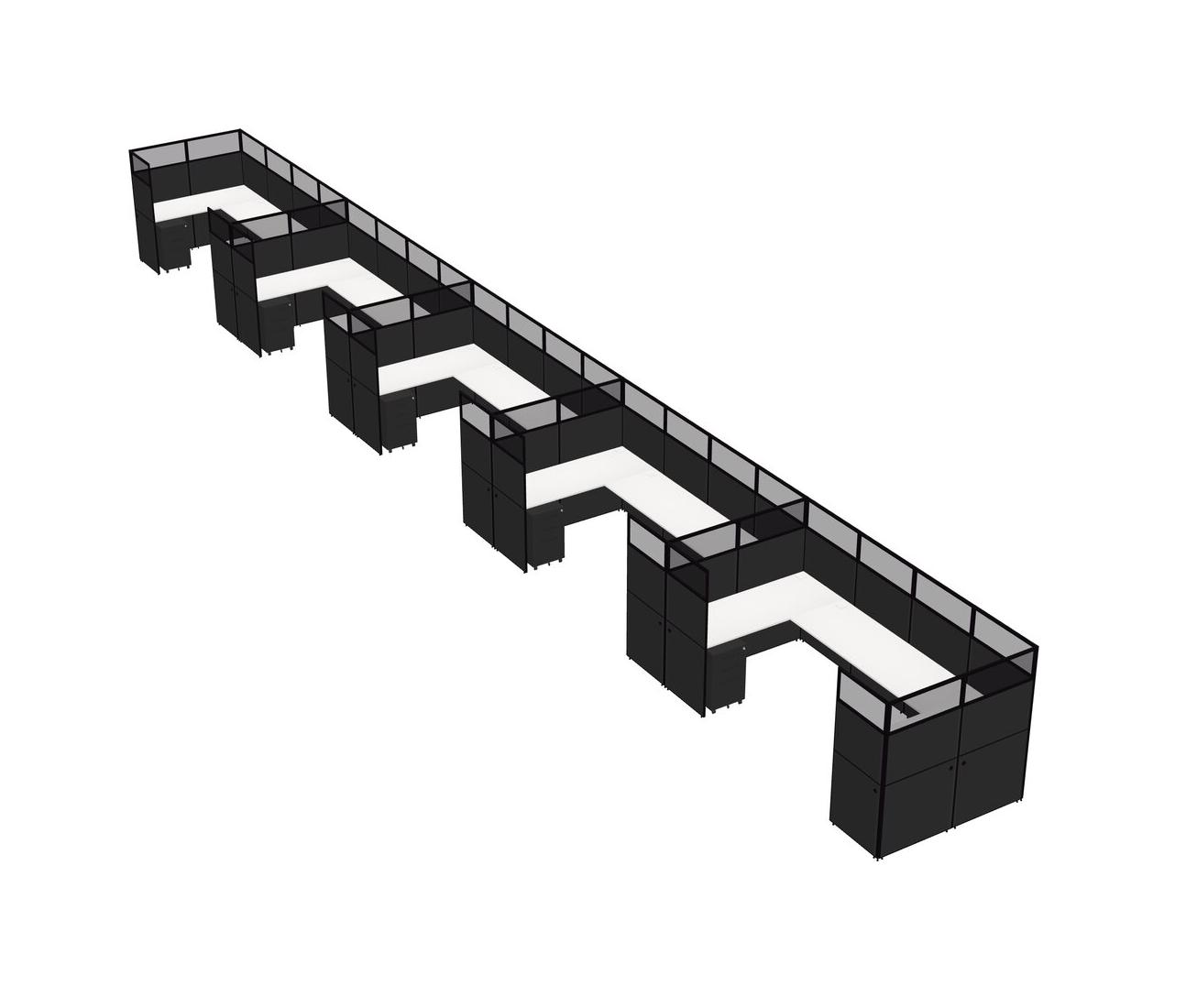 White U-shaped Panel System For 5 Person + Metal Mobile Drawers For 5 User(s)