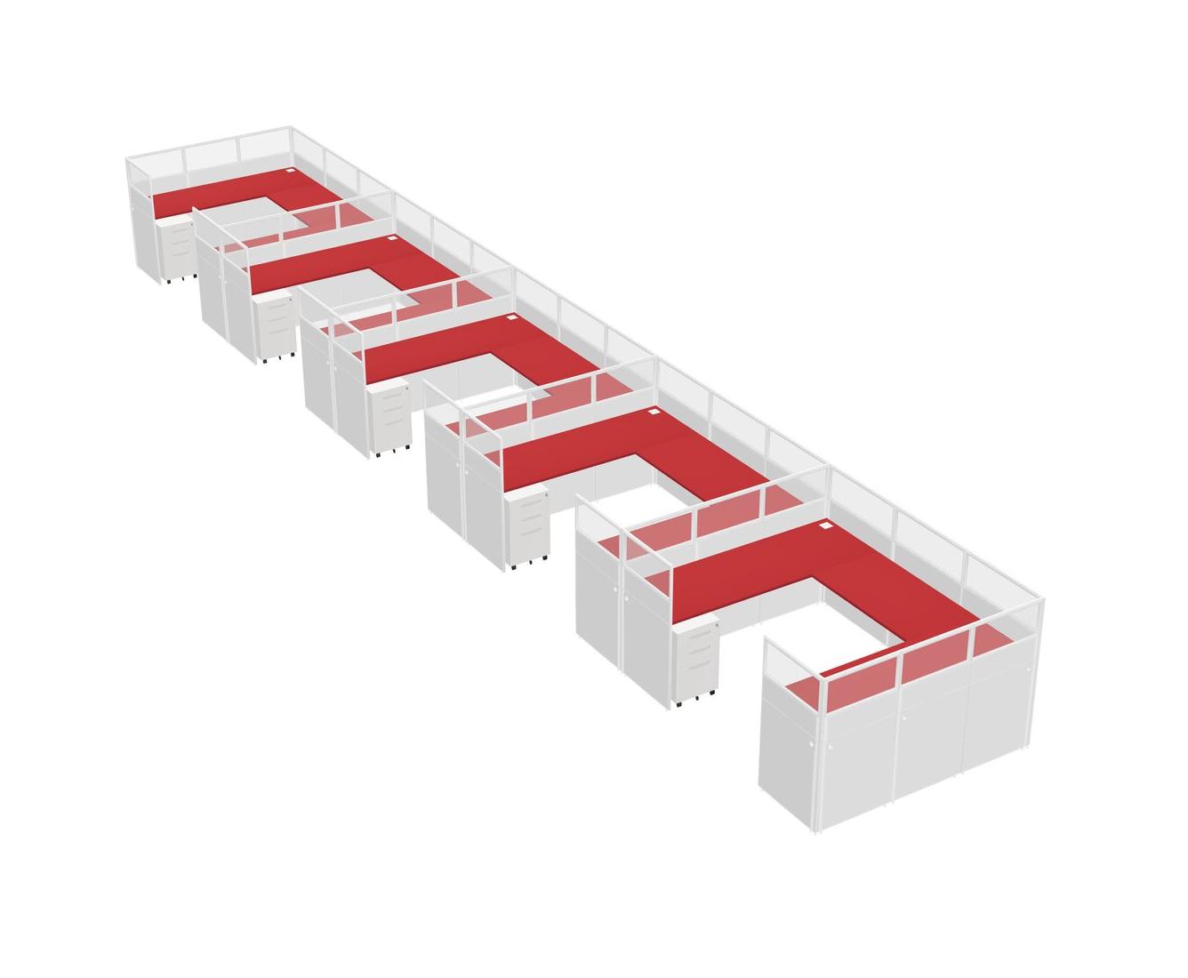 Prism Red U-shaped Panel System For 5 Person + Metal Mobile Drawers For 5 User(s)
