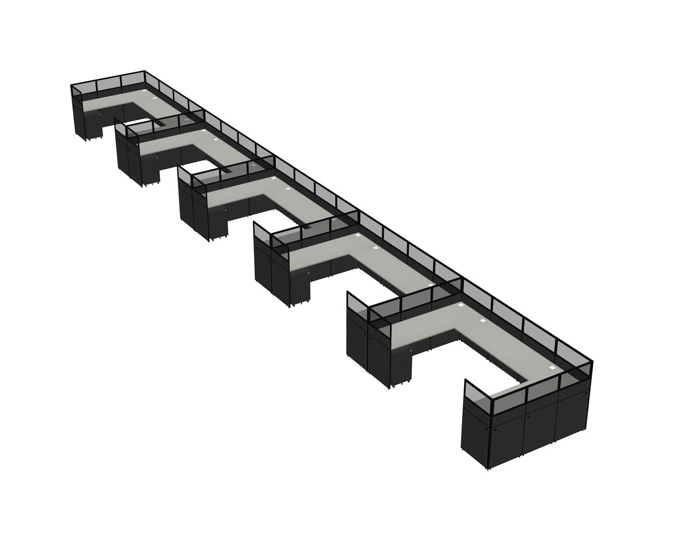 Grey Shadows U-shaped Panel System For 5 Person + Metal Mobile Drawers For 5 User(s)