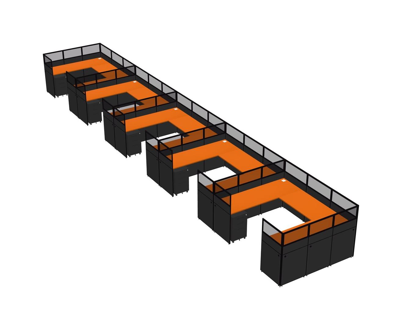 Orange U-shaped Panel System For 5 Person + Metal Mobile Drawers For 5 User(s)