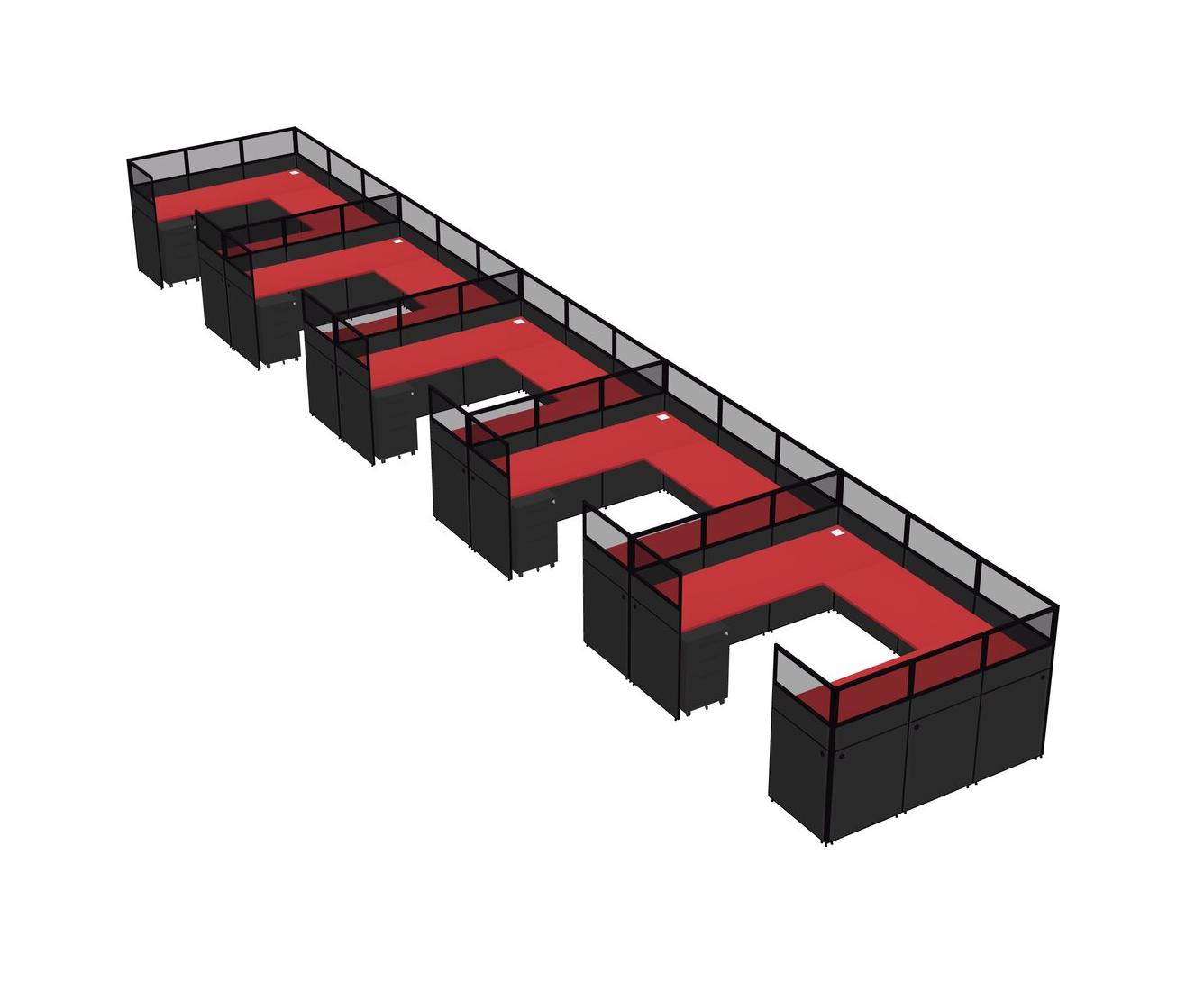 Prism Red U-shaped Panel System For 5 Person + Metal Mobile Drawers For 5 User(s)