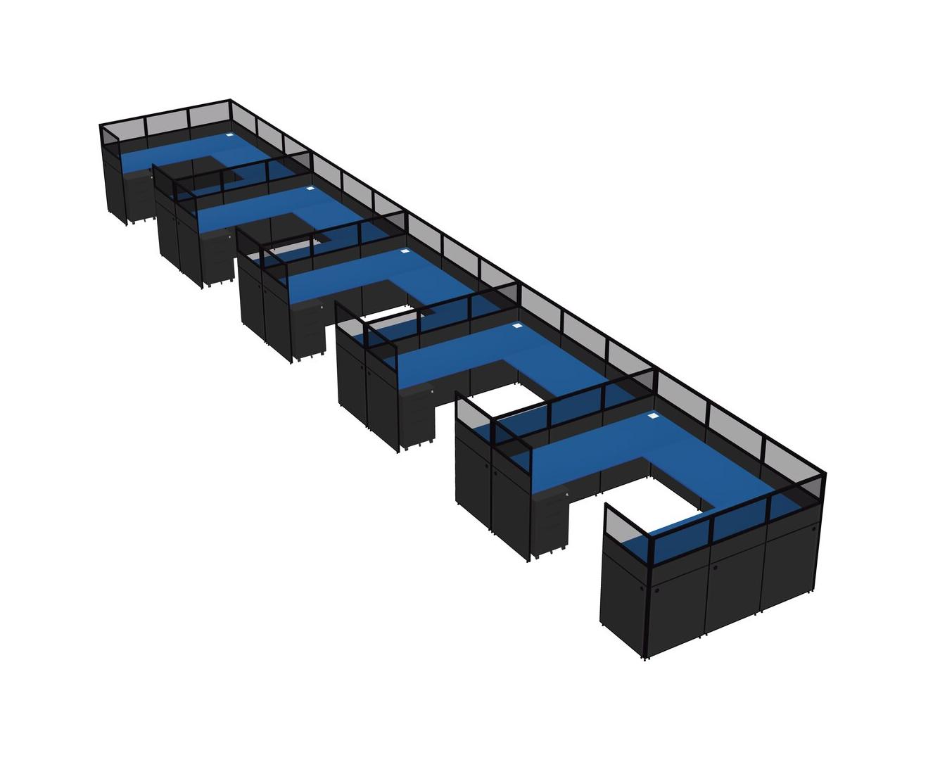 Prism Blue U-shaped Panel System For 5 Person + Metal Mobile Drawers For 5 User(s)