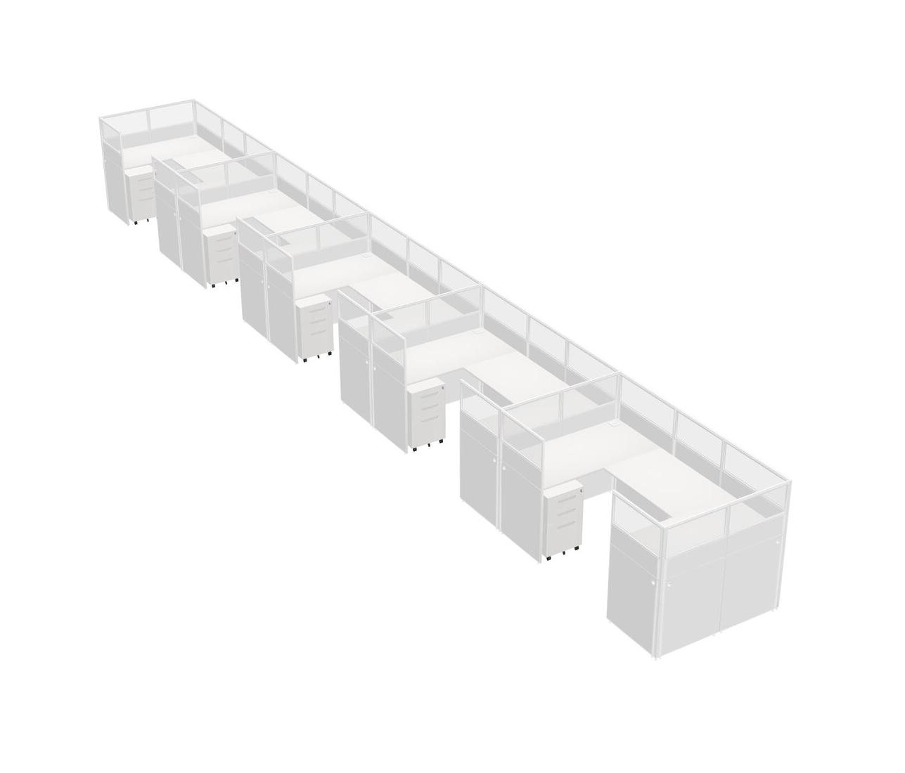 White U-shaped Panel System For 5 Person + Metal Mobile Drawers For 5 User(s)