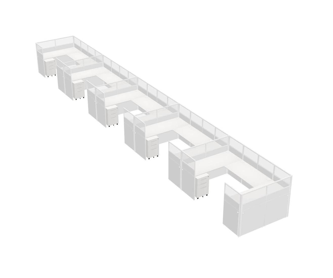 White U-shaped Panel System For 5 Person + Metal Mobile Drawers For 5 User(s)