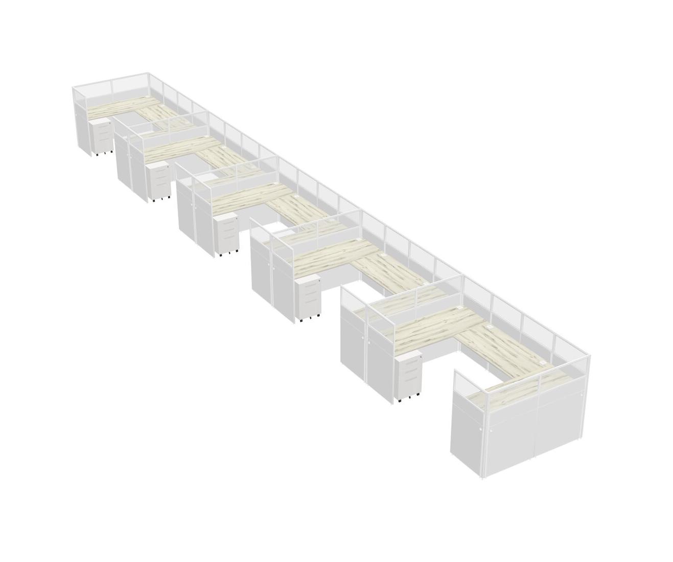 Heinne Holz U-shaped Panel System For 5 Person + Metal Mobile Drawers For 5 User(s)
