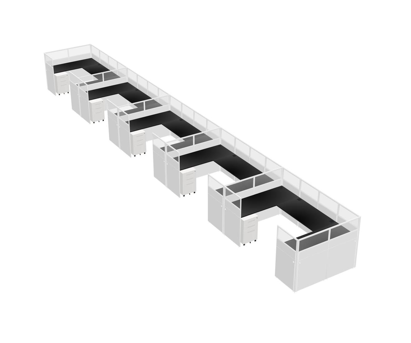 Black U-shaped Panel System For 5 Person + Metal Mobile Drawers For 5 User(s)