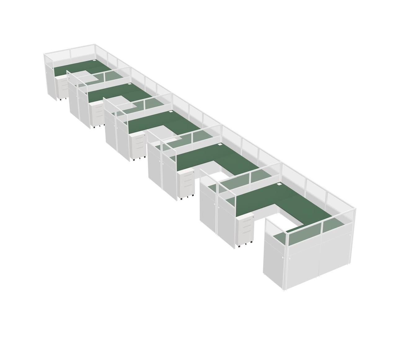 Green U-shaped Panel System For 5 Person + Metal Mobile Drawers For 5 User(s)