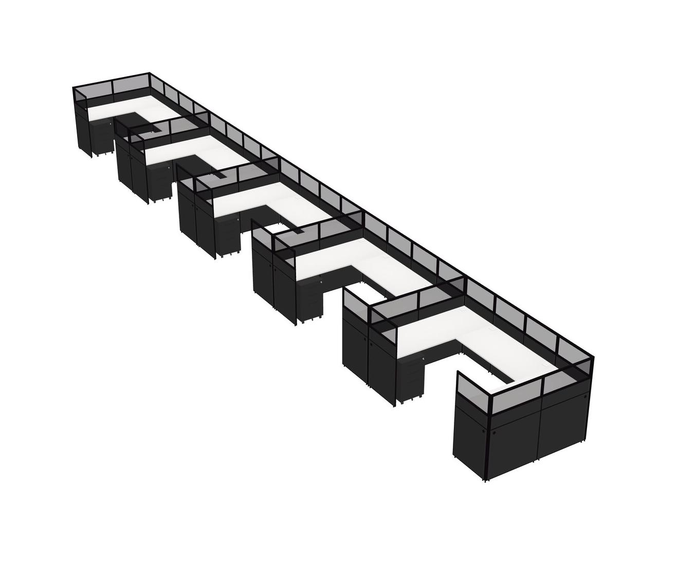 White U-shaped Panel System For 5 Person + Metal Mobile Drawers For 5 User(s)