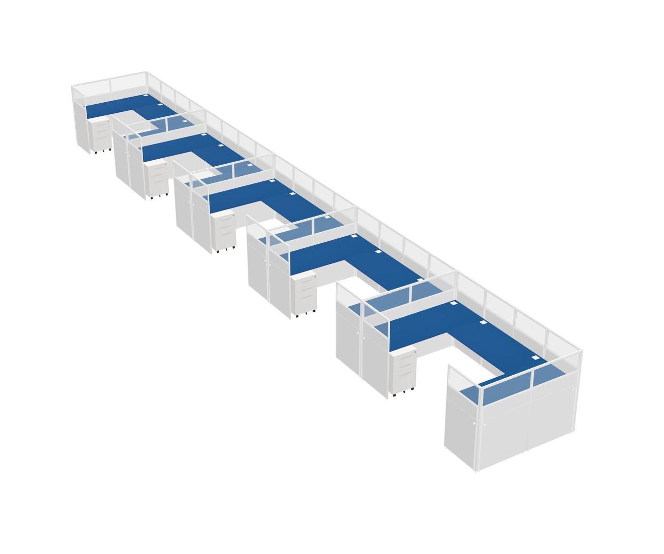 Prism Blue U-shaped Panel System For 5 Person + Metal Mobile Drawers For 5 User(s)