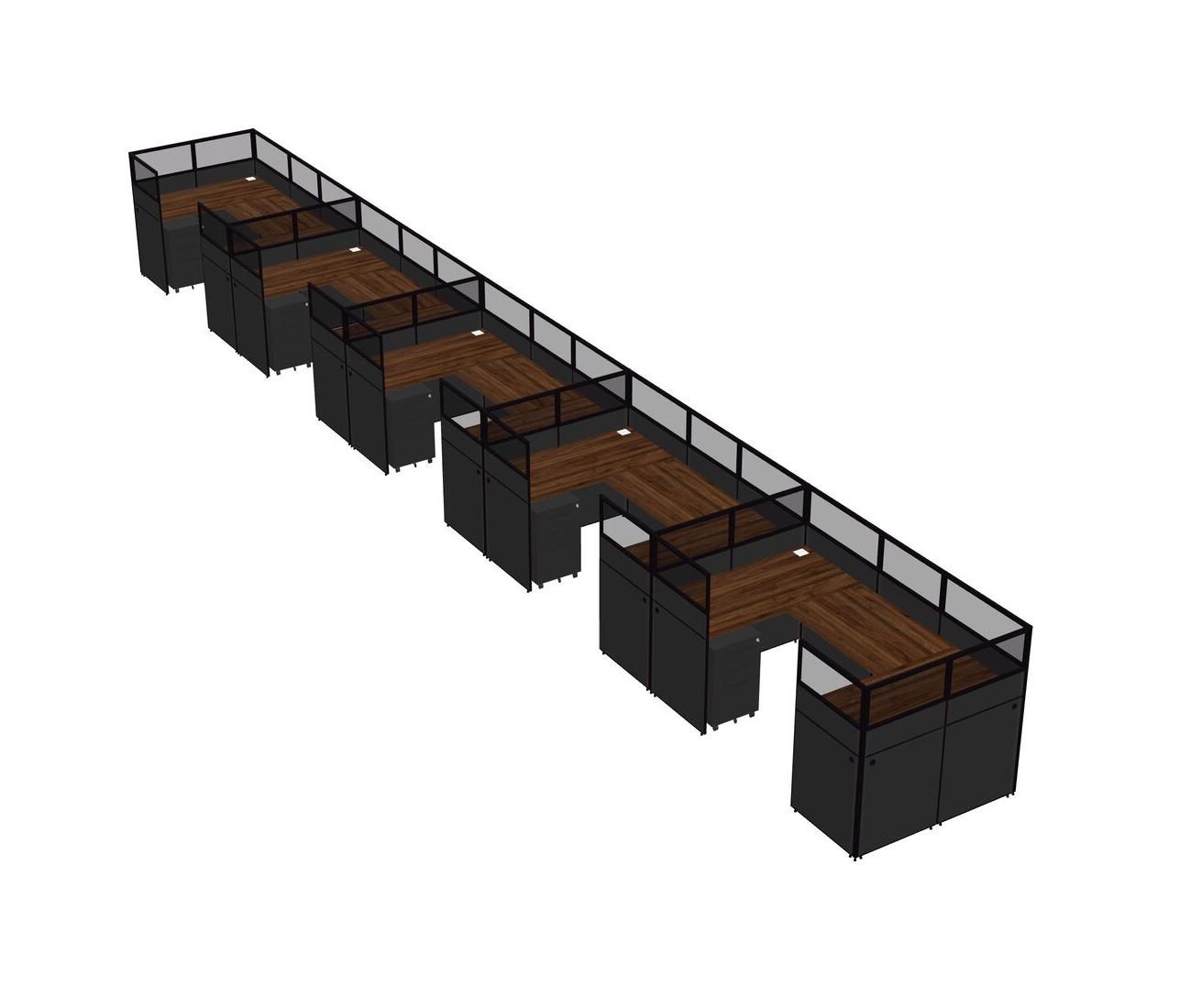 Columbia Walnut U-shaped Panel System For 5 Person + Metal Mobile Drawers For 5 User(s)