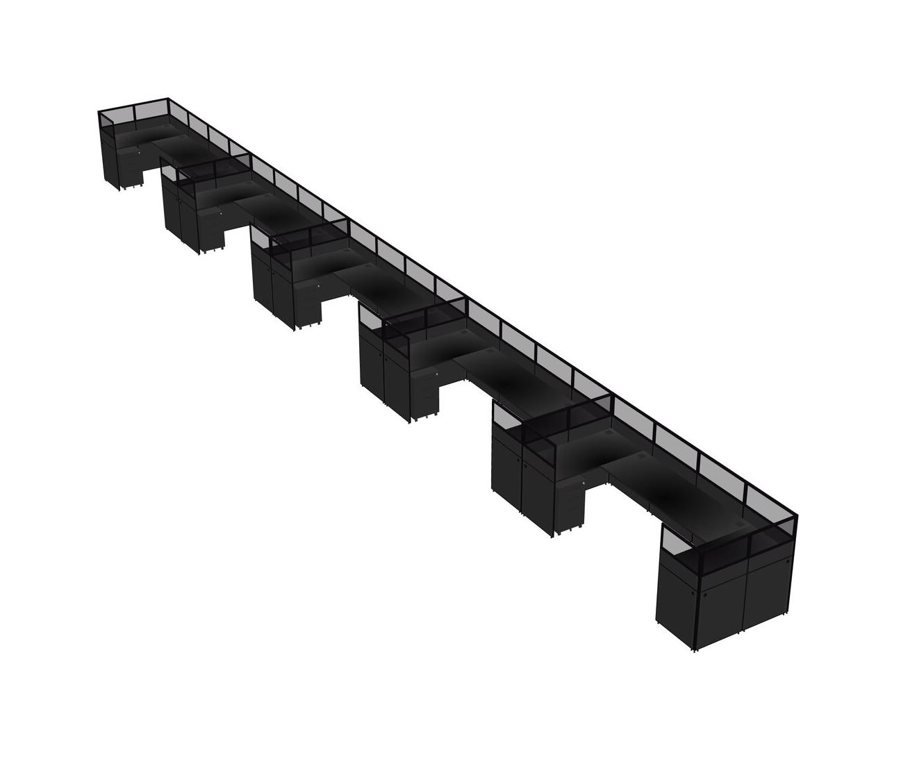Black U-shaped Panel System For 5 Person + Metal Mobile Drawers For 5 User(s)