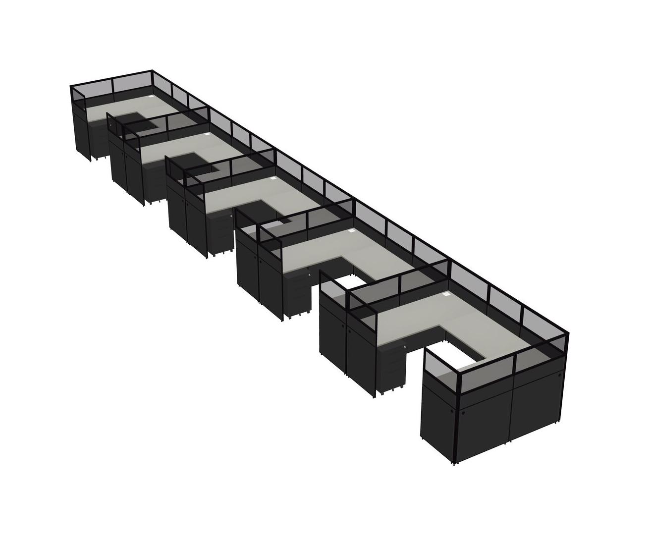 Grey Shadows U-shaped Panel System For 5 Person + Metal Mobile Drawers For 5 User(s)