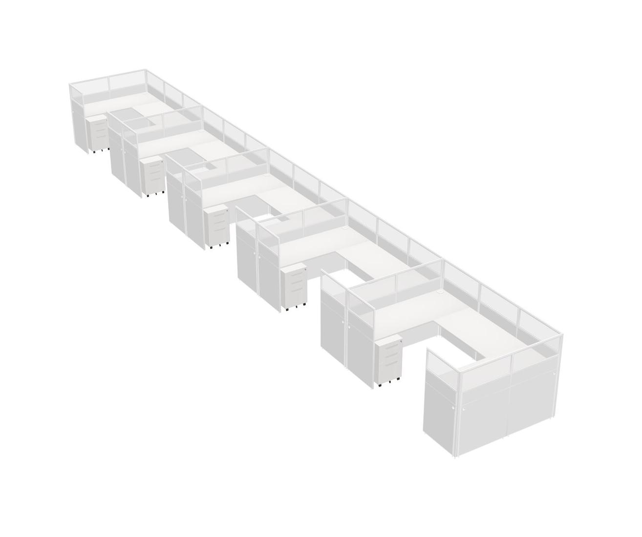White U-shaped Panel System For 5 Person + Metal Mobile Drawers For 5 User(s)