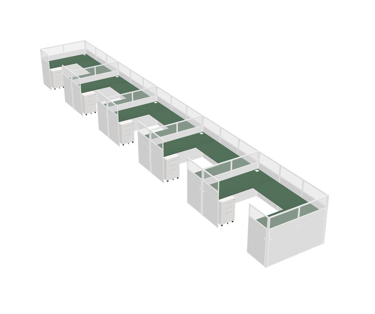 Green U-shaped Panel System For 5 Person + Metal Mobile Drawers For 5 User(s)